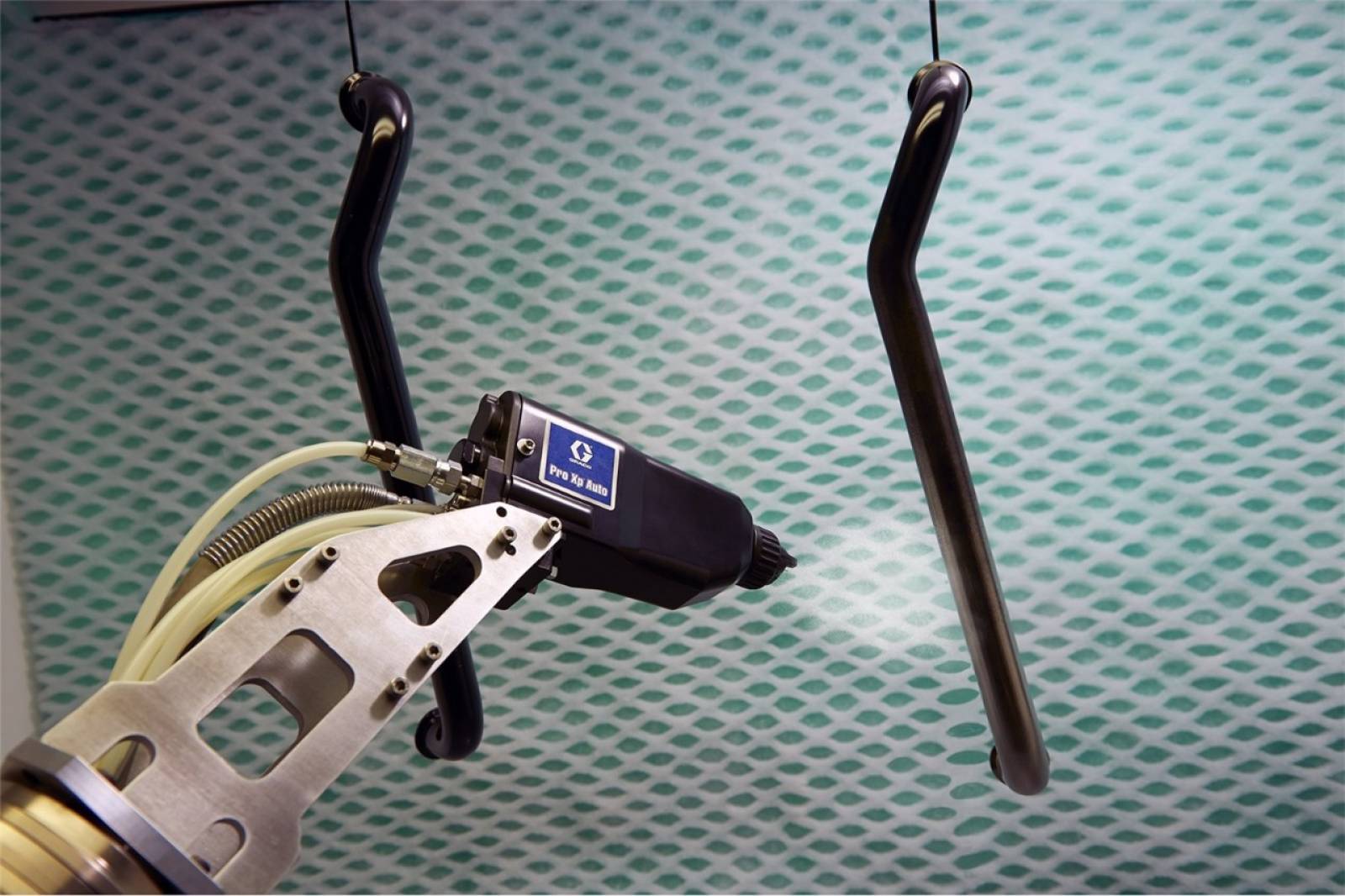 La pulvérisation électrostatique est une variante applicable à ces 3 techniques qui se distingue par son efficacité de transfert très élevée. En chargeant électriquement les particules de peinture, on les attire vers les pièces mises à la terre, ce qui permet d’obtenir une couche uniforme, même sur des surfaces complexes ou tubulaires grâce à son effet de contournement.