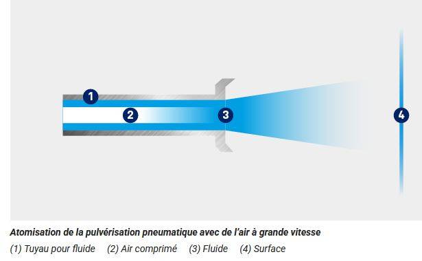 Parmi les procédés les plus performants, la pulvérisation pneumatique (conventionnelle, HVLP, LVMP) permet d’obtenir une atomisation du fluide mélangé avec de l’air comprimé, adaptée aux peintures de basse à moyenne viscosité. Elle assure une finition avec des surfaces lisses et brillantes.